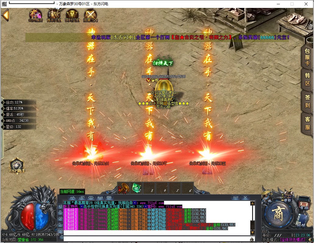 - 【版本说明】: 上线就送MAX刀速+双倍爆率提升.装备嗷嗷全爆.人人土豪装逼又激情!